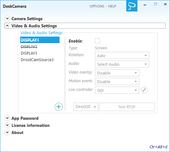 All audio and video content sources in DeskCamera are assigned the generic term of Media Sources in the application. DeskCamera works great because it will create a separate low-delay RTSP stream for each Media Source without having to juggle multiple application instances.